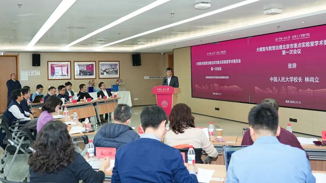 文继荣在汇报中详细阐述了实验室的战略定位与阶段性研究进展。实验室自2024年12月成立以来,紧扣国家战略需求扎实推进科研布局,目前已在关键技术领域取得多项重要突破,成功研发“玉兰-LLaDA”、AI深度搜索引擎 WebThinker、“玉兰-万象”多智能体社会模拟平台、涉外法治大模型等核心成果。同时,实验室积极联动联通、百川智能等企业开展联合共建,加速 AI 技术在多场景的落地应用。未来,实验室将持续聚焦大模型基础理论和技术研究,深化产学研用协同创新体系建设,为学校智慧治理研究提质增效,为北京市科技高质量发展注入新动能。