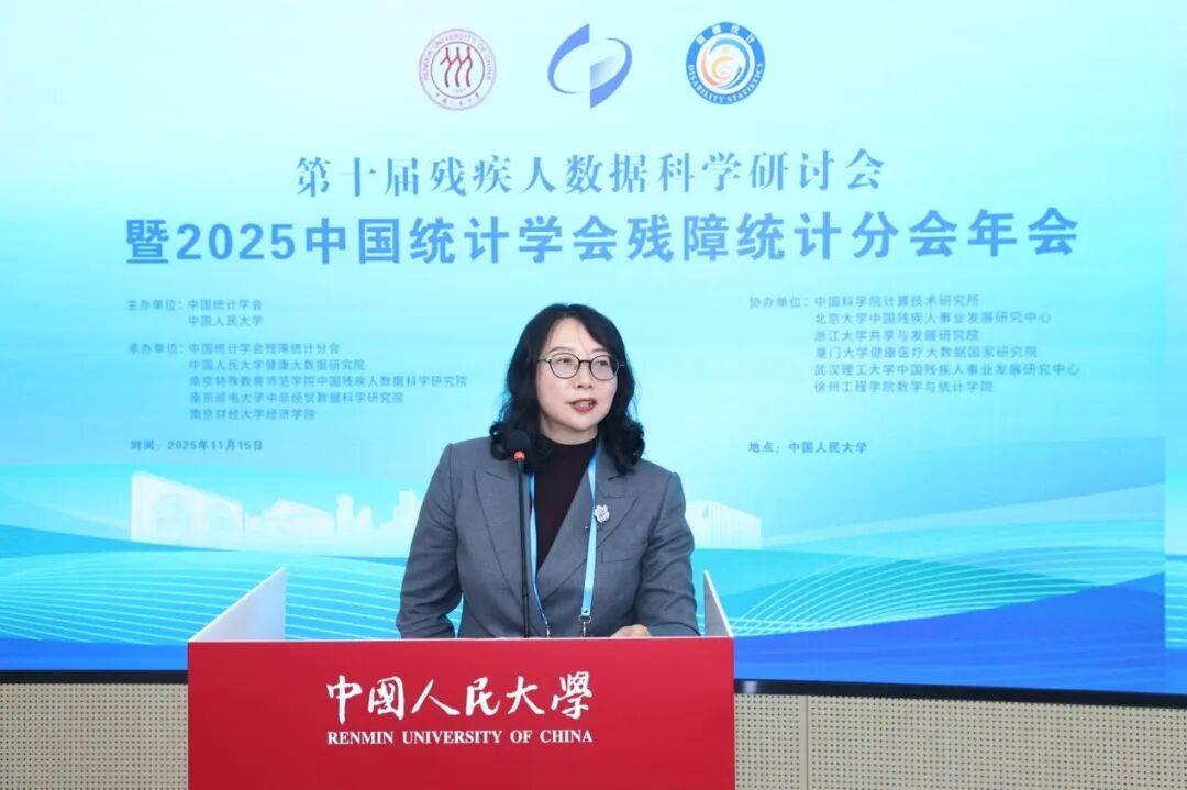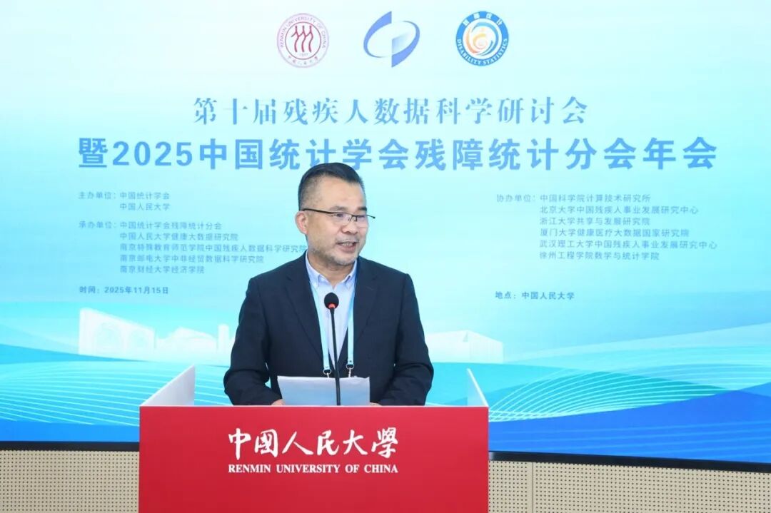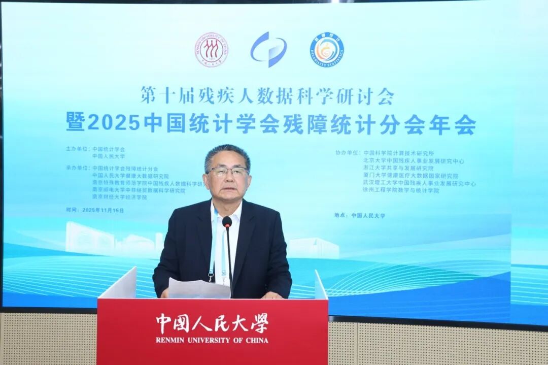 11月15日,第十届残疾人数据科学研讨会暨2025中国统计学会残障统计分会年会在中国人民大学顺利举办。中国人民大学党委常委、副校长郑新业,国家统计局总统计师卢山,十四届全国人大常委会委员、中国残联第七届主席团副主席、中国助残志愿者协会会长吕世明,中国统计学会副会长、残障统计分会会长凌迎兵等百余名专家学者参加会议。会议开幕式由中国统计学会副会长兼秘书长、国家统计局统计科学研究所所长闾海琪主持。