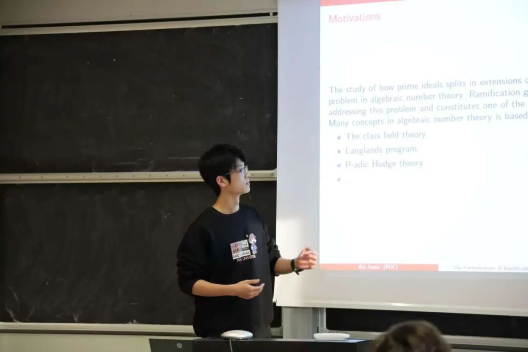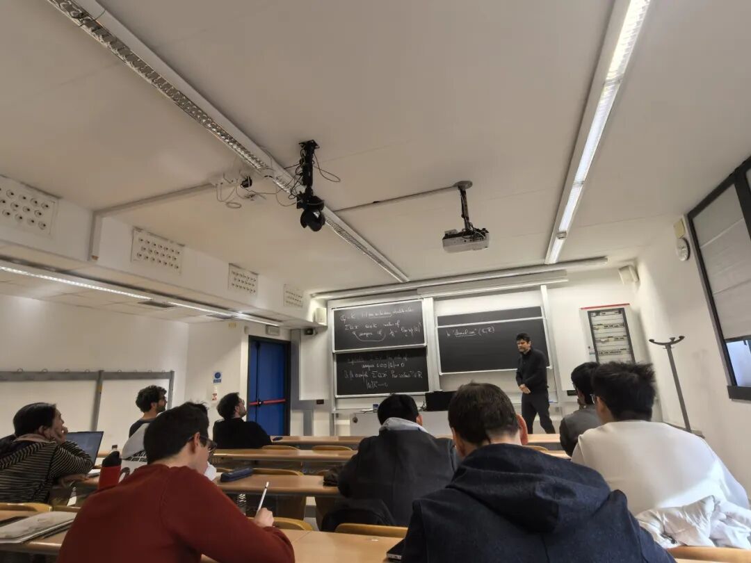 访学交流并非单向“输入式”的学习,更搭建了双向交流的学术平台。访问期间,王善文副院长以“p-adic transcendence of Hahn series”为题作专题报告,向帕多瓦大学的师生介绍了研究成果;2024级博士研究生白骏杰以“Formalization of Ramification Groups”为题,分享了数学形式化领域的研究思路与阶段性进展。