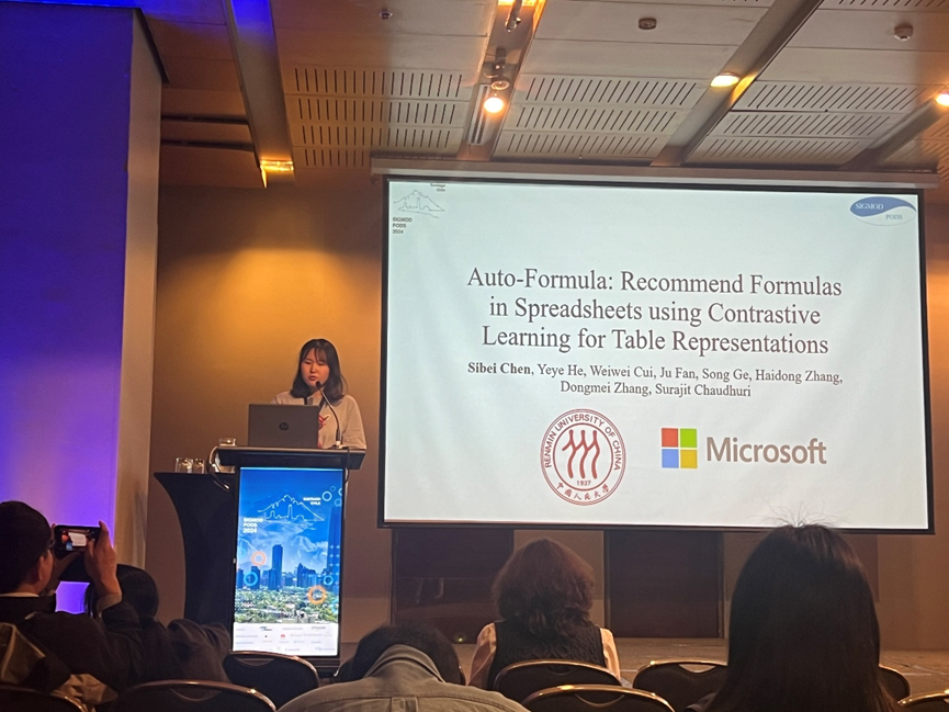 实验室的窗外,是更广阔的世界,陈思蓓在产业实践中也积累了丰富的经验。博士期间,她先后在微软亚洲研究院和阿里巴巴进行研究型实习。在微软亚洲研究院,她围绕Excel公式自动推荐问题开展了深入研究,针对真实用户的表格数据,设计并实现了具有生产级应用价值的公式生成与推荐方法。在阿里巴巴,她聚焦于云数据库工单的自动化解决方案生成,针对大规模线上数据库服务中的实际运维工单,构建了基于检索增强与大语言模型的自动诊断与配置推荐方案。这些项目均紧密结合实际业务需求,展示了她在工业场景中研究方法的高度实用性与可落地性。