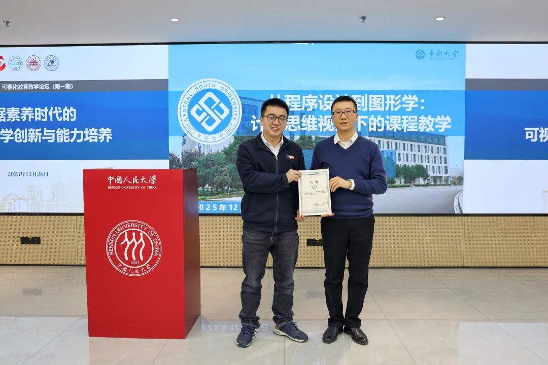 中国图象图形学学会(CSIG)可视化与可视分析专委会于 2025年12月26日在中国人民大学成功举办了“数视新知·可视化教育教学论坛”首期活动。论坛以“数据素养时代的可视化教学创新与能力培养”为主题,聚焦多学科背景下的可视化课程体系构建、数据思维能力培养以及可视分析教学中的新方法。可视化与可视分析专委会主任、天津大学软件学院党委书记兼院长张加万教授出席论坛并致辞。本次活动由专委会副主任、中国人民大学汪云海教授,专委会教育教学工作组、山东大学曾琼副教授共同担任执行主席。