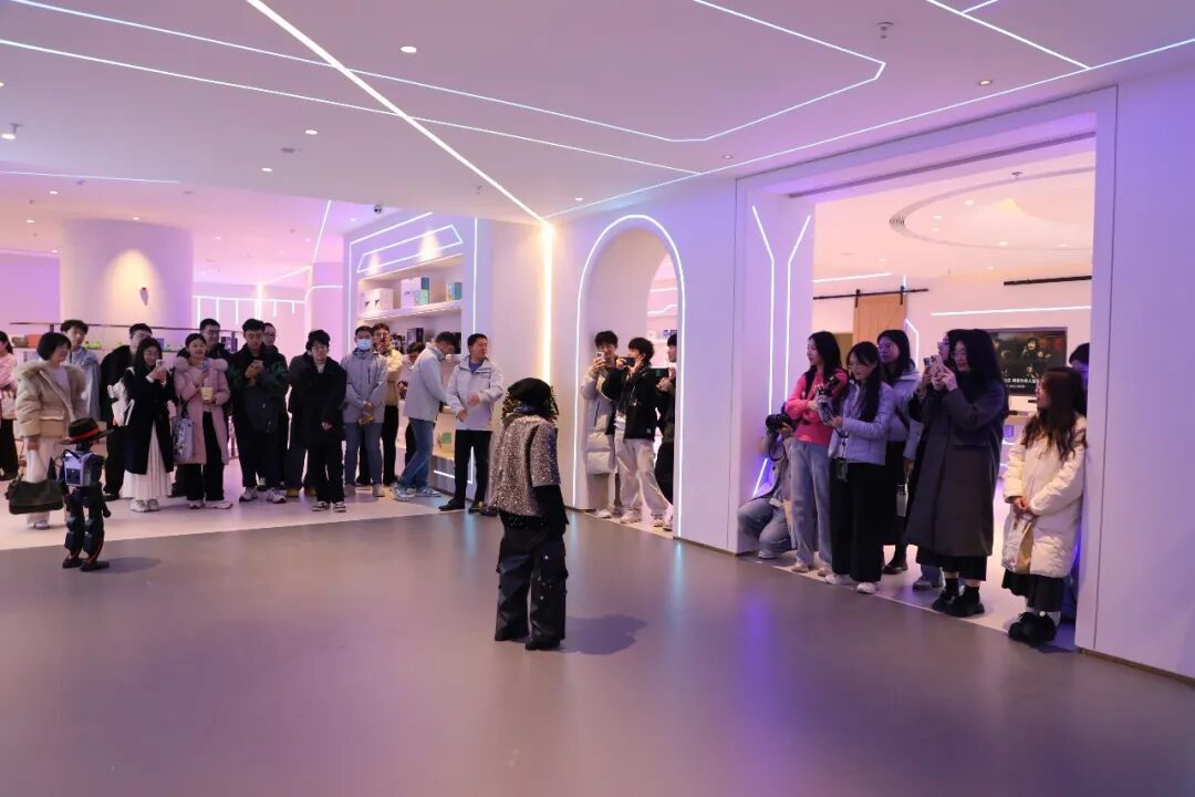 当日下午,实践团来到了由华笈智能打造的全球首家机器人6S店。这里汇聚了宇树、高仙、优必选等品牌的近百种前沿机器人,涵盖工业应用、商业服务及教育科研等多个领域。