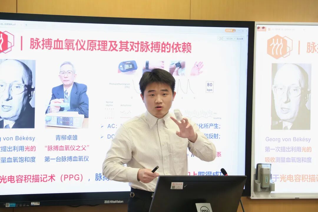 2025级化学与生命资源学院博士生周鸿涛的演讲题目是《血氧“真探”:一套基于光纤光谱的皮下血氧检测系统》 ,他生动的介绍他们组自主开发的光纤光谱的血氧“真探”系统,该技术实现了不依赖脉搏的深层组织血氧无损监测,为皮瓣移植及糖尿病足溃疡的缺血预警提供了新的技术路径。