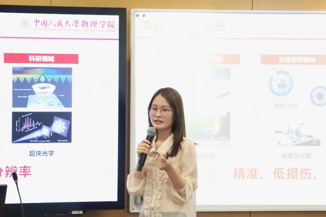 2024级物理学院博士生钟叮的演讲题目是《超短脉冲激光的产生:激光锁模技术》 ,她围绕激光锁模技术的核心原理展开,系统地介绍了其技术本质及其关键实现机制,带大家走进激光锁模的世界。