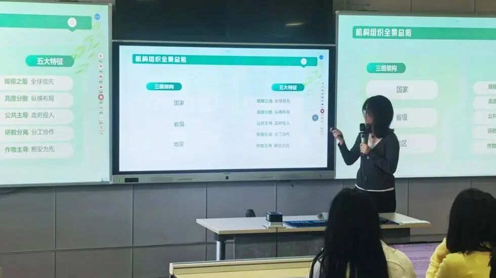 谭茗予同学系统汇报了我国农业科研机构组织体系的架构与功能,指出科研工作与国家战略、生产实践的紧密结合。