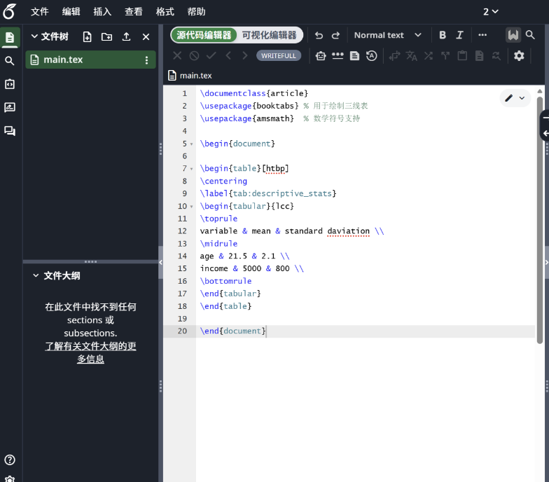 代码编辑器:编辑LaTeX代码,支持语法高亮、自动补全、错误提示等。