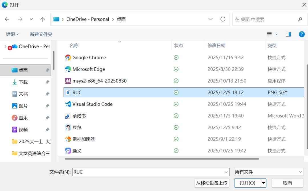 踩坑原因:要么没上传图片,要么代码里的文件名和实际文件名不一致(比如代码写RUC.png,实际是ruclogo.png,或大小写不匹配);