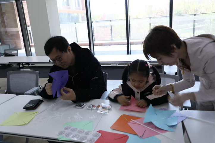 下午制作举办风车制作活动,校友和师生在室内折叠制作风车,并用贴纸在空白风车上自由创作,将愿望与期许化为色彩与图案。大家手持精心制作的风车,在校园步道漫步,随着风车吹起,大家扬起阵阵笑声。
