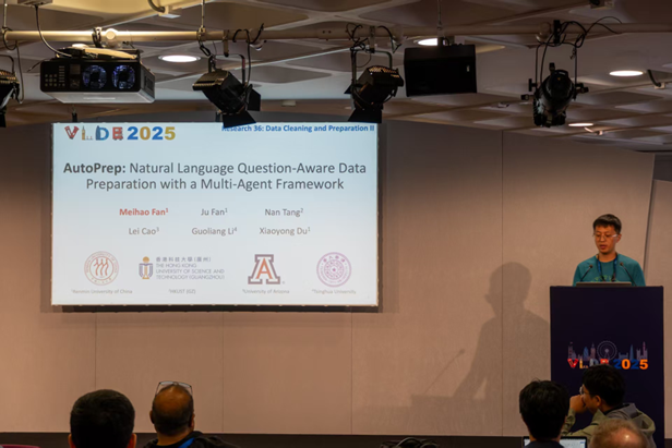 范梅浩,共青团员,中国人民大学信息学院2025 级计算机科学与技术专业博士生,师从范举教授,主要研究方向为基于大模型的自动化数据准备技术。目前已产出数据管理领域国际顶级会议论文 3 篇,其中AutoPrep: Natural Language Question-Aware Data Preparation with a Multi-Agent Framework被 VLDB 2025 录用,Cost-Effective In-Context Learning for Entity Resolution: A Design Space Exploration被 ICDE 2024 录用,另有 1 篇AutoPrep2: General Automatic Data Prep System拟投稿至 VLDB 2026。曾获校级 “中国人民大学拔尖人才资助计划”“三好学生” 等荣誉。