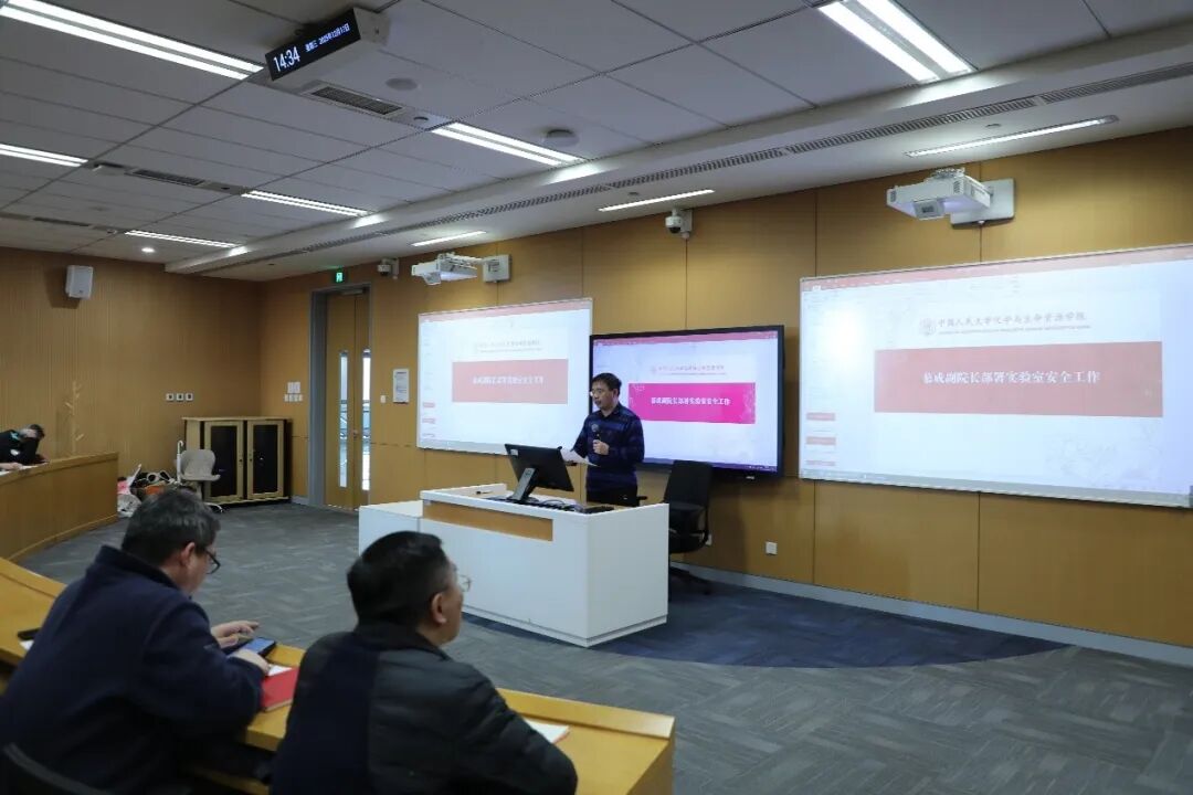 副院长慕成专题部署了实验室安全工作。他指出,实验室安全是学院发展的生命线,必须持续推动安全管理制度落实落细,健全责任体系与考核机制,加强实验室分级管理与隐患闭环整改。通过常态化、制度化的安全教育培训,不断提升师生安全意识和应急处理能力,真正将安全要求转化为师生的自觉行动,共同筑牢学院安全发展的坚实防线。