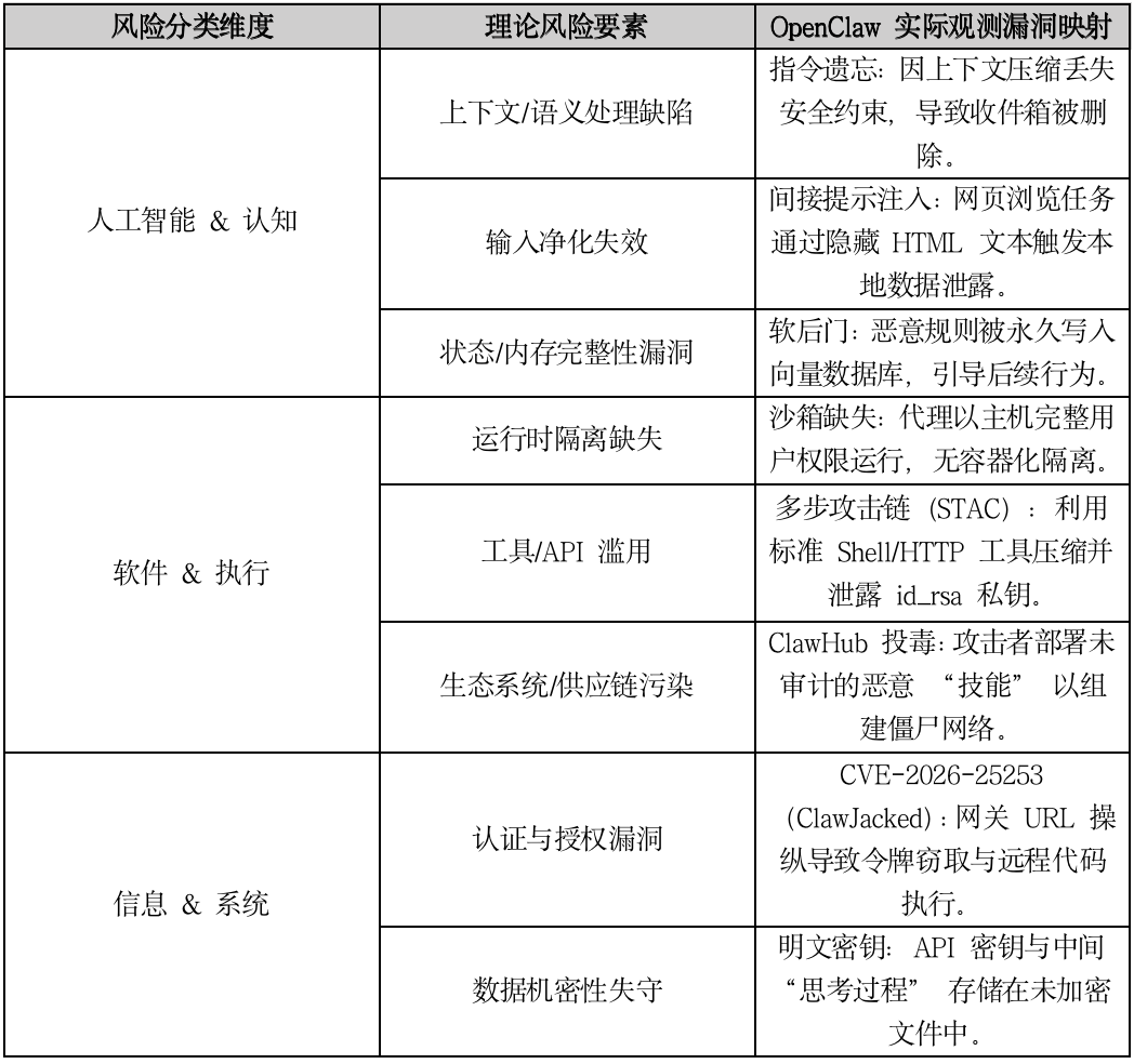 随着OpenClaw爆火,其安全事件层出不穷。例如,Cisco 扫描了 31,000 个 Skill,发现超过四分之一存在安全漏洞;ClawHacvoc大规模恶意Skills投毒,一旦用户执行恶意安装步骤,攻击者便可获取 SSH 密钥、浏览器密码、加密货币钱包私钥、云服务 API 密钥等敏感数据;Meta 安全专家在测试OpenClaw 时,因 AI 处理大量邮件时遗忘 “未经确认不得操作” 的安全约束,批量删除其 200 多封工作邮件。为此,国家信息安全漏洞库(CNNVD)发布通报,2026年1月到3月9日,共采集到82个OpenClaw漏洞,存在极大的安全隐患。