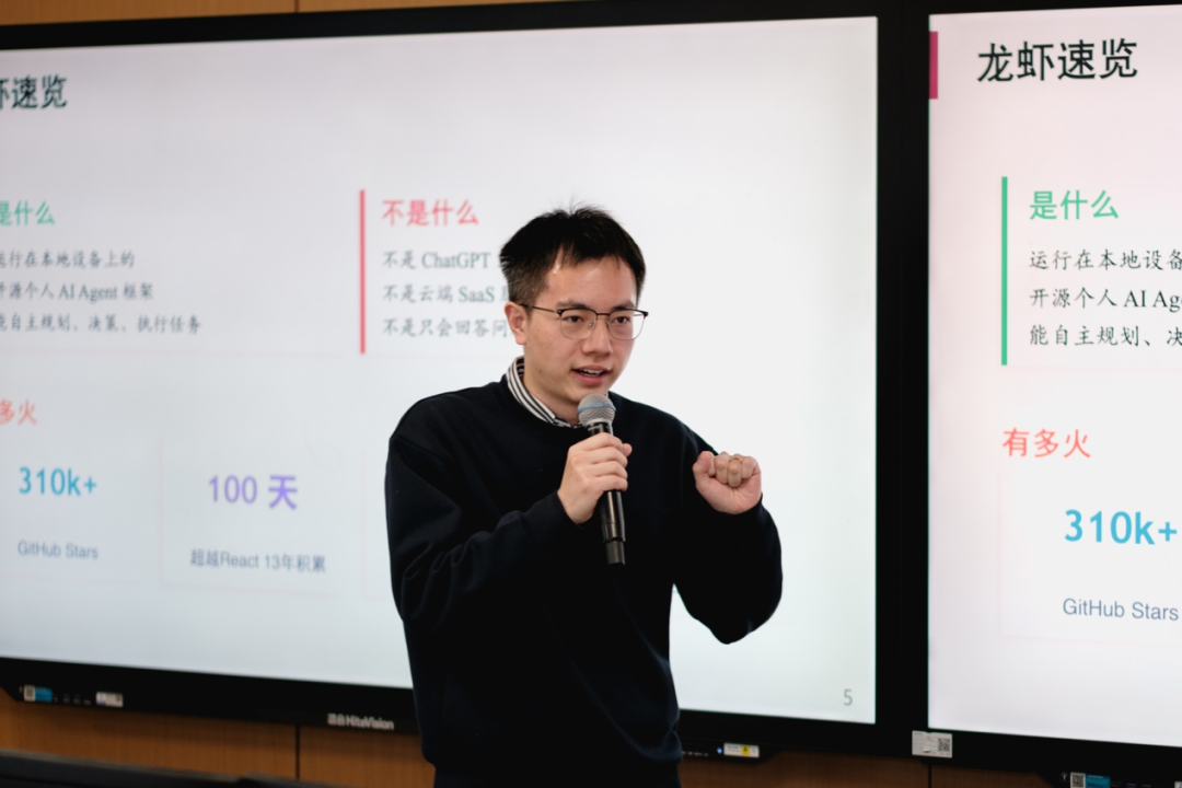 在此基础上,他详细介绍了OpenClaw(俗称“龙虾”)相比传统对话大模型的关键拓展:一是操作边界的拓展,从单纯的文本/代码交互,延伸至全局系统环境的跨平台后台运行,可完全接入本地操作系统与各类API;二是交互模式的升级,从被动响应用户提问,转变为全天候主动自动化的行为模式,可主动分析、规划并执行任务。作为运行在本地设备上的开源个人Agent框架,OpenClaw凭借创新的技术设计迅速走红。