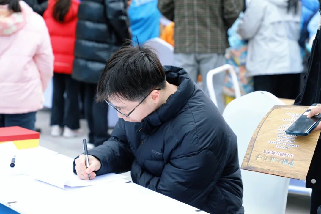 活动现场人头攒动,同学们手持“探险地图”穿梭于各个摊位。入口处的签名墙也成为一大亮点。大家用不同字体书写圆周率π、数学公式与定理,拼凑出一面充满创意的“π墙”,定格属于数学的独特印记。
