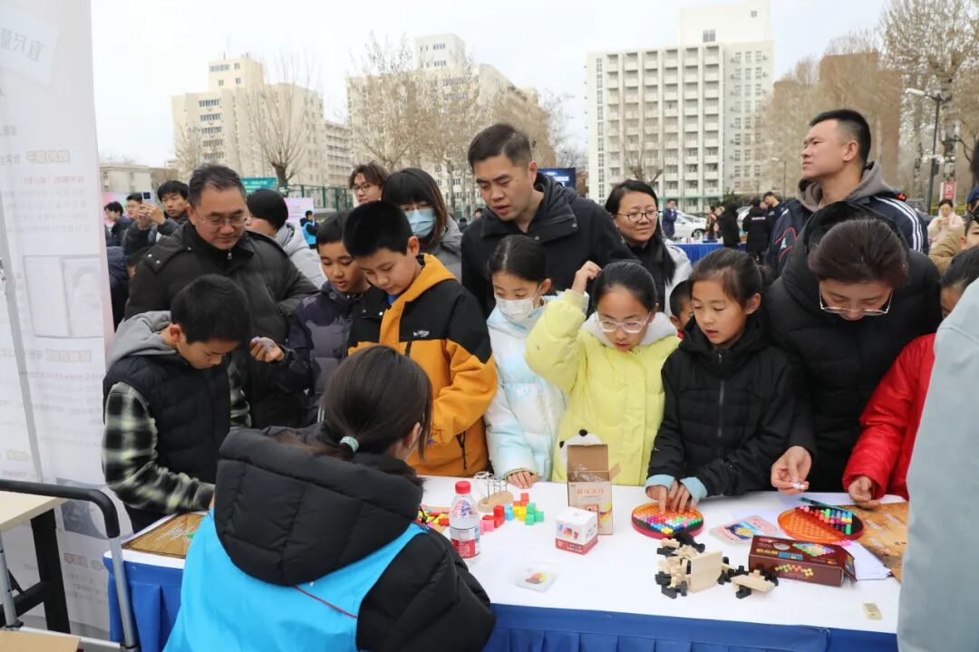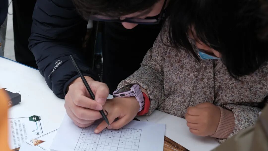 在“度量之岛”,“24点挑战”比拼心算与反应速度,“数字黑洞”寻找隐藏的数列规律,“火柴魔法阵”拼出看似不可能的结构。走进“符号之城”,参与者穿越“数独迷宫”,破解“数字密码锁”,在“函数迷踪”中寻找隐藏的数学怪兽,系列游戏成为跨越年龄的思维竞技场,孩子们一同解锁数字奥秘。“无穷之海”里,同学们进行“算力王者”挑战计算极限,“极小曲面实验室”中,铁丝框架浸入肥皂水后形成的彩虹曲面,让孩子们爆发出阵阵惊叹:“哇——原来数学可以这么美!”直观的视觉冲击,让大家真切感受到数学的浪漫与神奇。在“结构之塔”区域,七巧板拼图、莫比乌斯环体验和“不可能图形”构建,让参与者触摸空间结构的奇妙,感受数学不再只是符号,而是可触可感、可拼可造的鲜活世界。在“随机之境”区域,“蒲丰投针实验”让大家亲手验证几何概率,“博弈论挑战”上演策略对决。在这里,大家意识到,即使面对随机与不确定,数学也能帮助我们理解世界的规律。