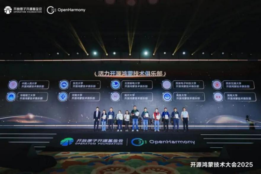 近日,由开源鸿蒙项目群技术指导委员会主办、华为承办的“开源鸿蒙技术大会2025”在湖南长沙国际会议中心举行。本次会议吸引了3488人注册参会,248位全球演讲嘉宾、18万线上观众、130余所高校与130余家企业积极参与。来自明理创新实验室的人大开源鸿蒙技术俱乐部(简称OpenHarmony技术俱乐部)表现突出,荣获多项表彰。