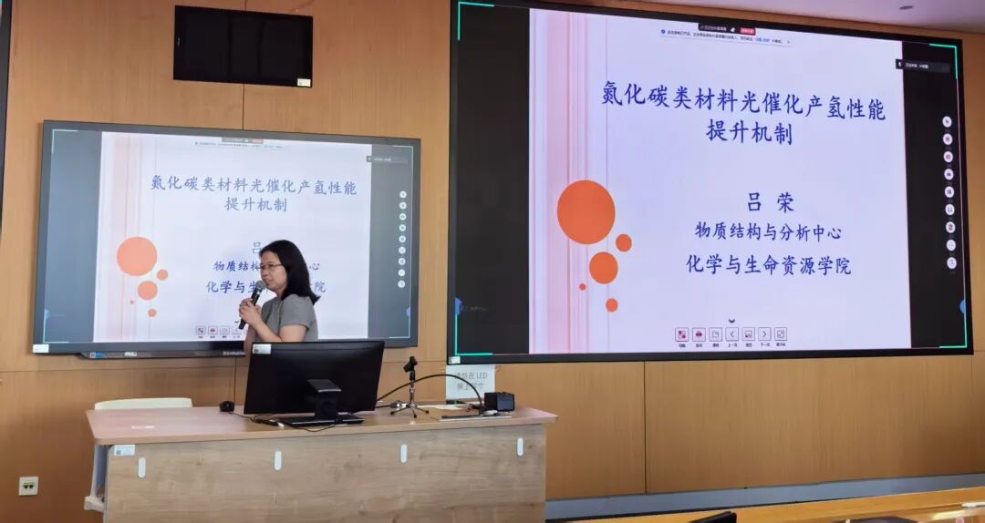 吕荣副教授进行了题为《氮化碳类材料光催化产氢性能提升机制》的报告。她在报告中聚焦氮化碳光催化产氢,通过离子调控、缺陷控制改性材料,使产氢性能显著提升,接近硫化物水平,还从载流子动力学角度探究机制,为优化光催化剂提供思路。