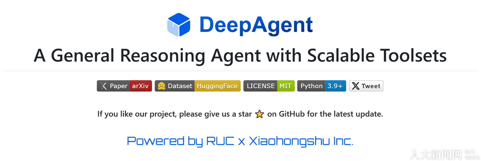 高瓴人工智能学院文继荣 、窦志成团队推出深度推理智能体DeepAgent