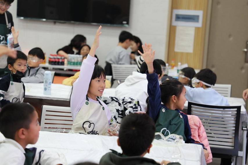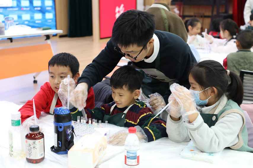 随后的实验环节更是将课堂氛围推向高潮。在志愿者大哥哥、大姐姐的指导下,每位小朋友都亲手完成了紫甘蓝汁变色、黄油制作、自制唇膏三个趣味实验。鲜明的色彩变化、奇妙的状态转变,让孩子们直呼新鲜有趣。这些贴近生活的小实验,不仅让孩子们感受到化学的魅力,更在他们心中悄悄埋下了热爱科学的种子。