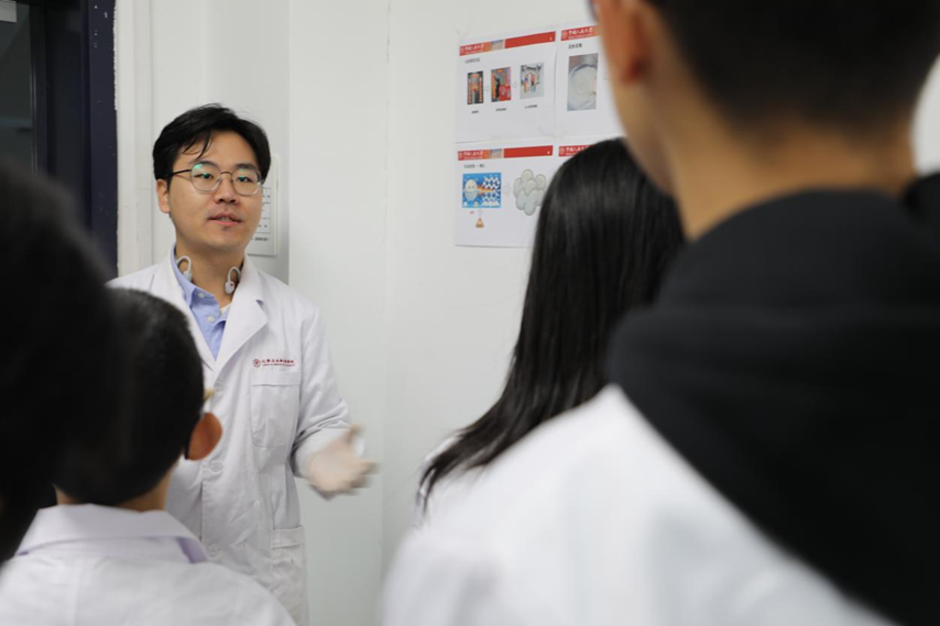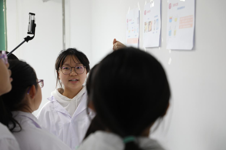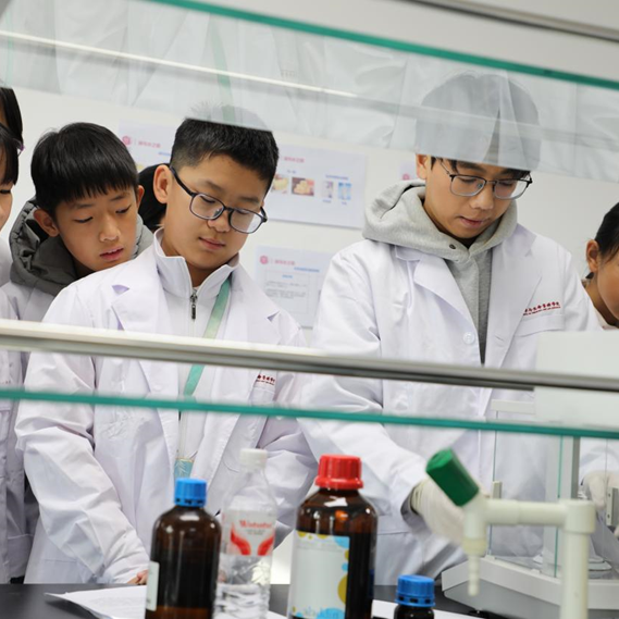 高龄组的同学们身着整齐的实验服,在老师的带领和志愿者的全程协助下,有序走进实验室开启探索之旅。