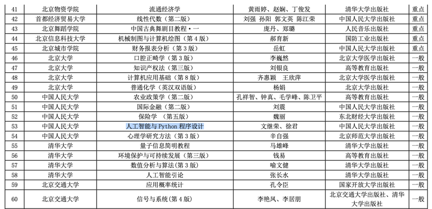 近日,北京市教育委员会公布2025年北京高校本科教学项目建设评选结果,中国人民大学高瓴人工智能学院教材《人工智能与Python程序设计》入选北京高校优质本科基本教学资源,“门头沟区 中国人民大学创新创业基地”入选北京本科高校产学研深度育人平台。