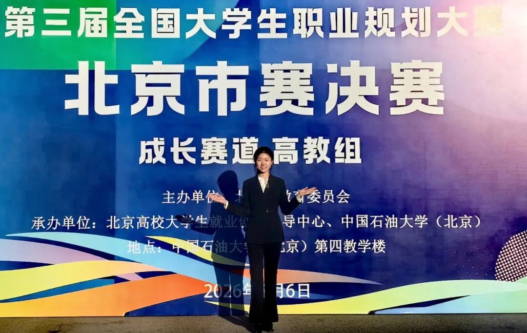 经历校赛至北京市初赛与决赛的数月赛程,许一孟在学校招生就业处与指导老师的指导下悉心打磨材料,在备赛过程中进一步明晰了职业要求与未来规划,最终自信生动地讲述了属于自己的职业规划故事。