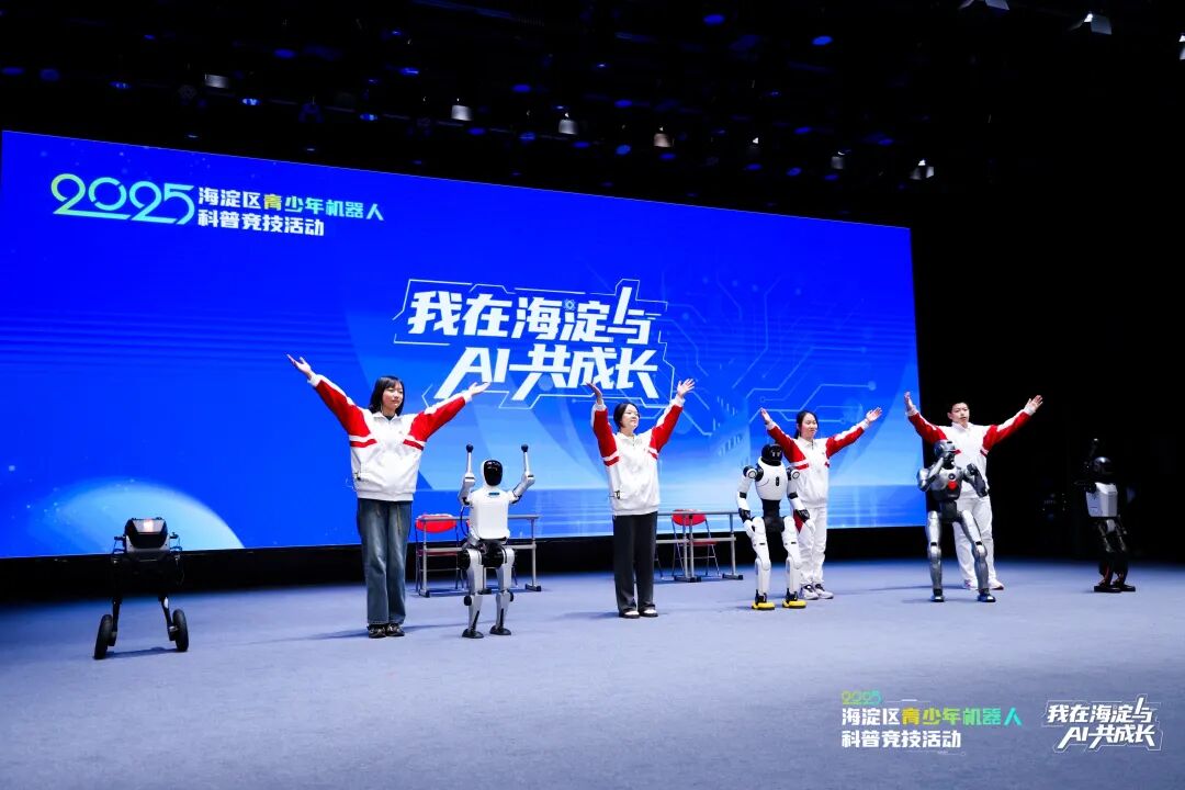 开幕式上,科技与艺术的碰撞点燃全场热情。原创人机互动短剧《我们的一天》中,“小海”“小淀”等5位机器人与人大附中学生演员默契配合,生动演绎未来智能生活场景,诠释了人机协同、科技服务于人的核心理念;五一未来实验小学带来的科技舞蹈《AI伴我向未来》,以“创造-引导-共成长”的三段式叙事,艺术化呈现青少年与AI从相知到相伴的成长历程,引发全场观众共鸣。