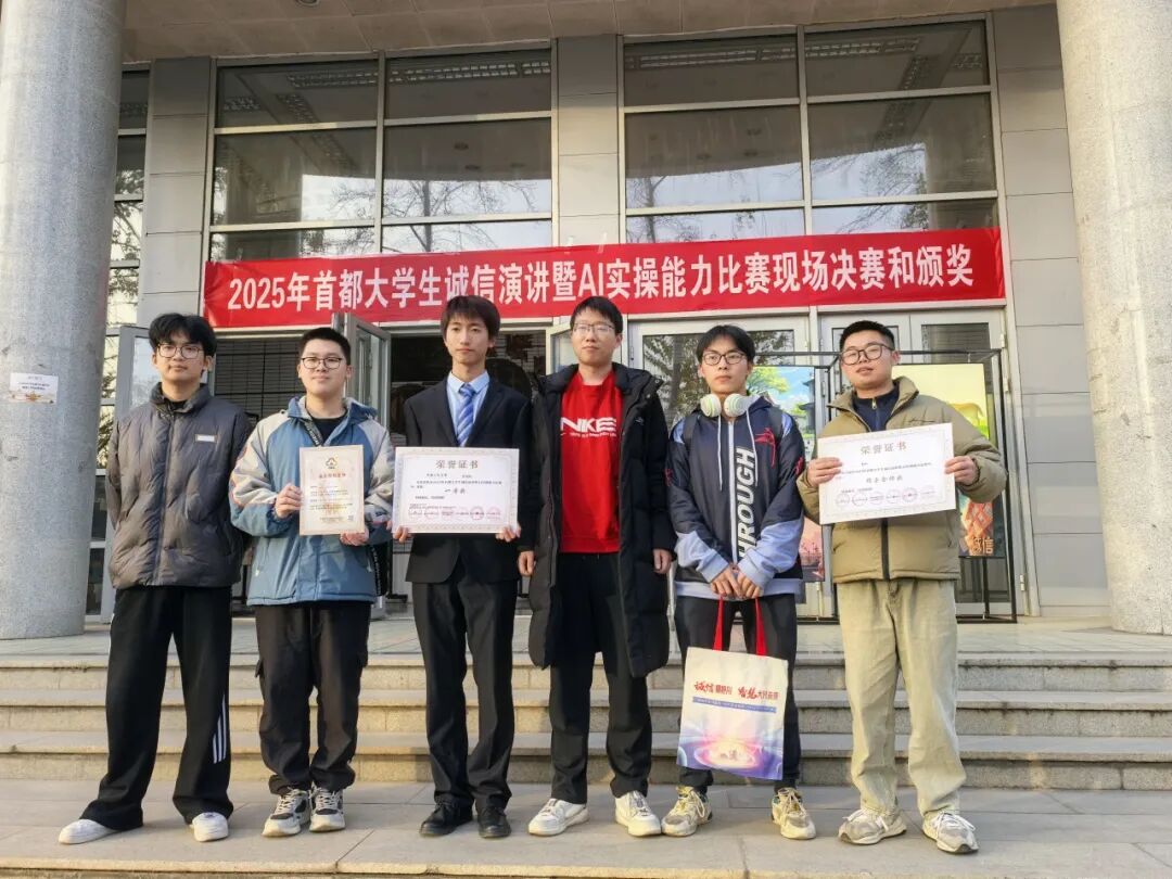 11月29日,2025年首都大学生诚信演讲暨AI实操能力比赛现场决赛和颁奖典礼在北京联合大学北四环校区南院报告厅举行。中国人民大学高瓴人工智能学院“诚成城”团队凭借出色的数字人设计融合演讲表现,在决赛中脱颖而出,荣获一等奖。团队指导老师任安兴获“指导金师”奖。