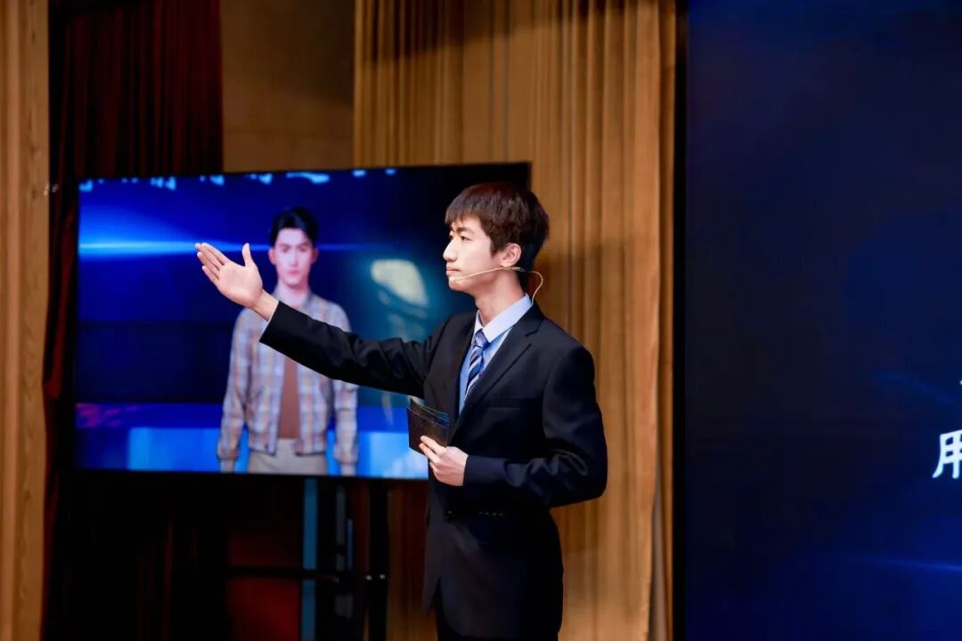 为备战此次比赛,团队在初赛阶段即精心制作了数字人视频与配套演讲课件,顺利晋级。在决赛筹备过程中,成员们持续优化数字人视频与演讲内容,反复演练数字人与演讲者的互动衔接,逐句打磨,力求呈现最佳效果。决赛现场,张景超沉着发挥,通过数字人与演讲的有机结合,有效把控节奏、营造氛围,赢得评委与观众的一致好评。