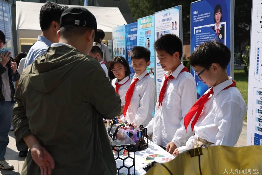 为推动科学教育大中小学一体化,今年科技文化体验日活动特别设置了人大附中分校、人大附小科技成果展示区域。