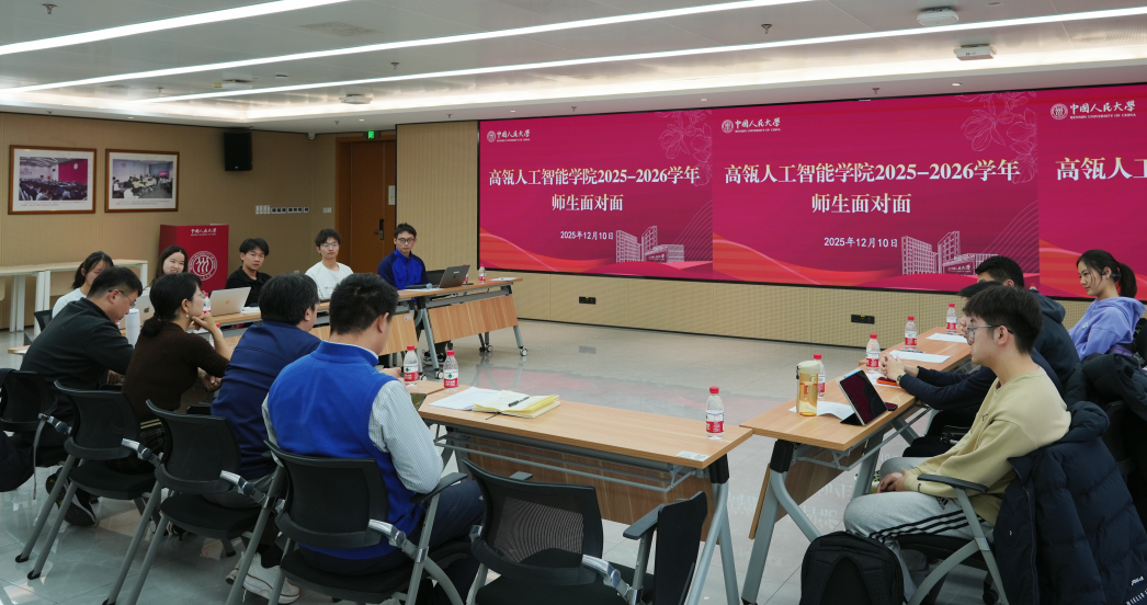 为进一步加强学院与学生之间的联系,推动学院各项工作更加贴近学生的实际需求,中国人民大学高瓴人工智能学院开展2025-2026学年秋季学期“师生面对面”座谈活动,高瓴人工智能学院党委书记李艳丽、院长文继荣、副院长窦志成、党委副书记张育铭、副院长魏哲巍、团委书记任安兴、专职辅导员茹润钰及本硕博各年级学生代表参会。