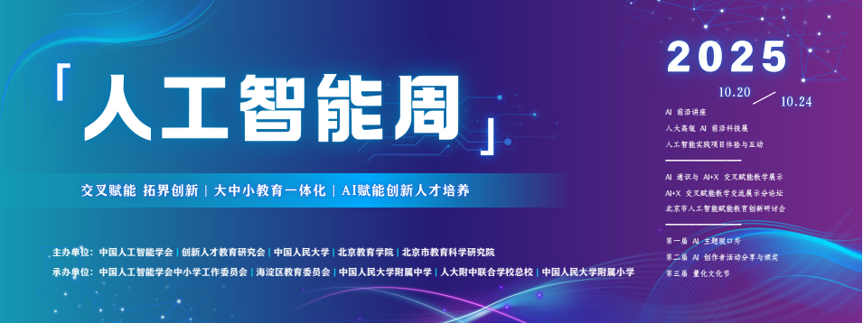 呼应国家与北京市AI教育新指引,本届人工智能周以“AI交叉赋能·拓界创新”为主题,旨在构建大中小一体化育人新生态,深化AI赋能创新人才培养。