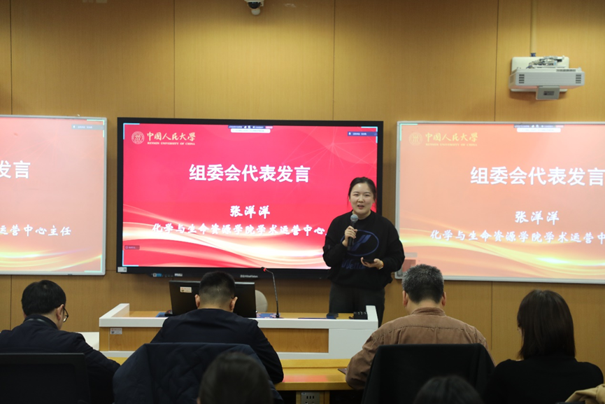 学院学术运营中心主任、组委会代表张洋洋随后发言。她坦言,评审期间被同学们的专业感动:操作步骤逐帧配图,安全提示用红框标注,海报配色、配音节奏一丝不苟。她希望大家把这份严谨带回实验室,“让规范成为肌肉记忆,让安全成为科研底色”。