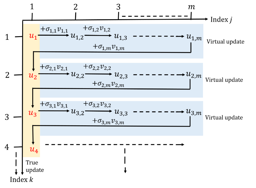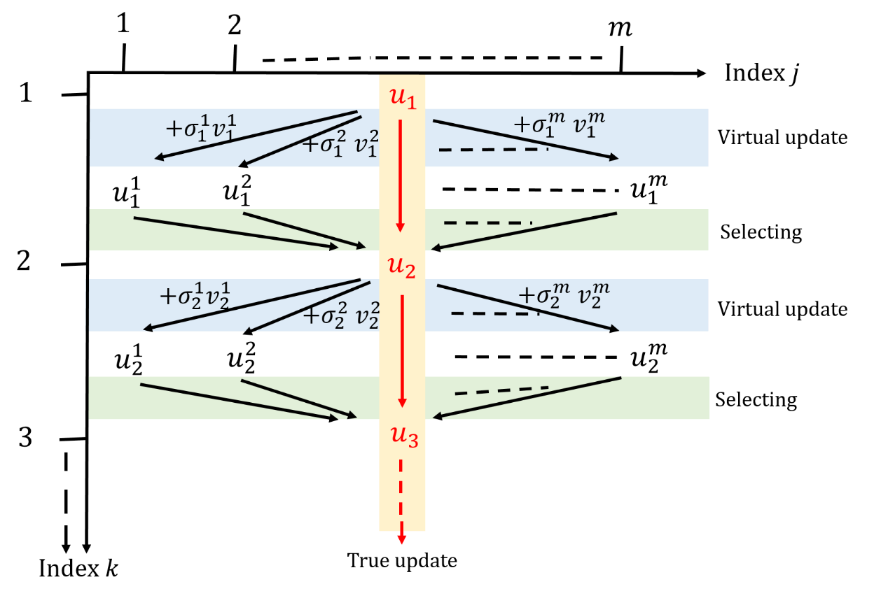 本研究利用偏好向量对目标进行实时排序,然后设计多个指标集合函数。对于每次迭代学习更新,按照并行和串行两种方式进行虚拟更新(图3-4)。每次虚拟更新是对特定的指标集合里面的目标使用MGDA。对于每种算法,本文均给出了对应的线搜索步长和最优步长两种步长选择方式。通过发展新的多目标理论分析方法证明了两种算法的收敛性。