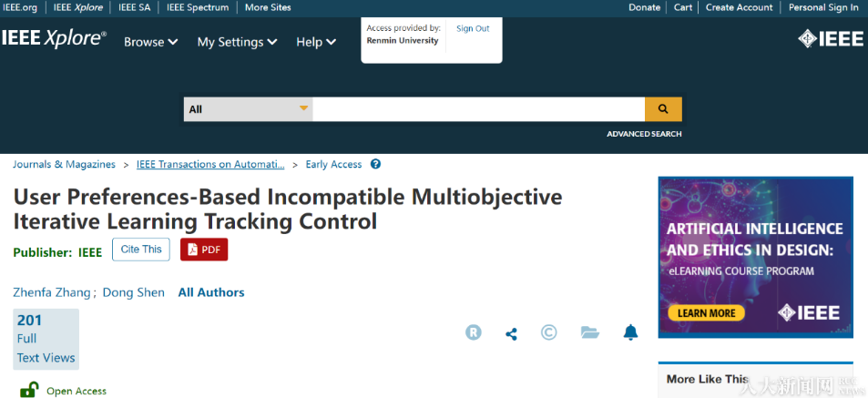 数学学院沈栋教授团队在期刊 IEEE Transactions on Automatic Control 以长文形式发表论文