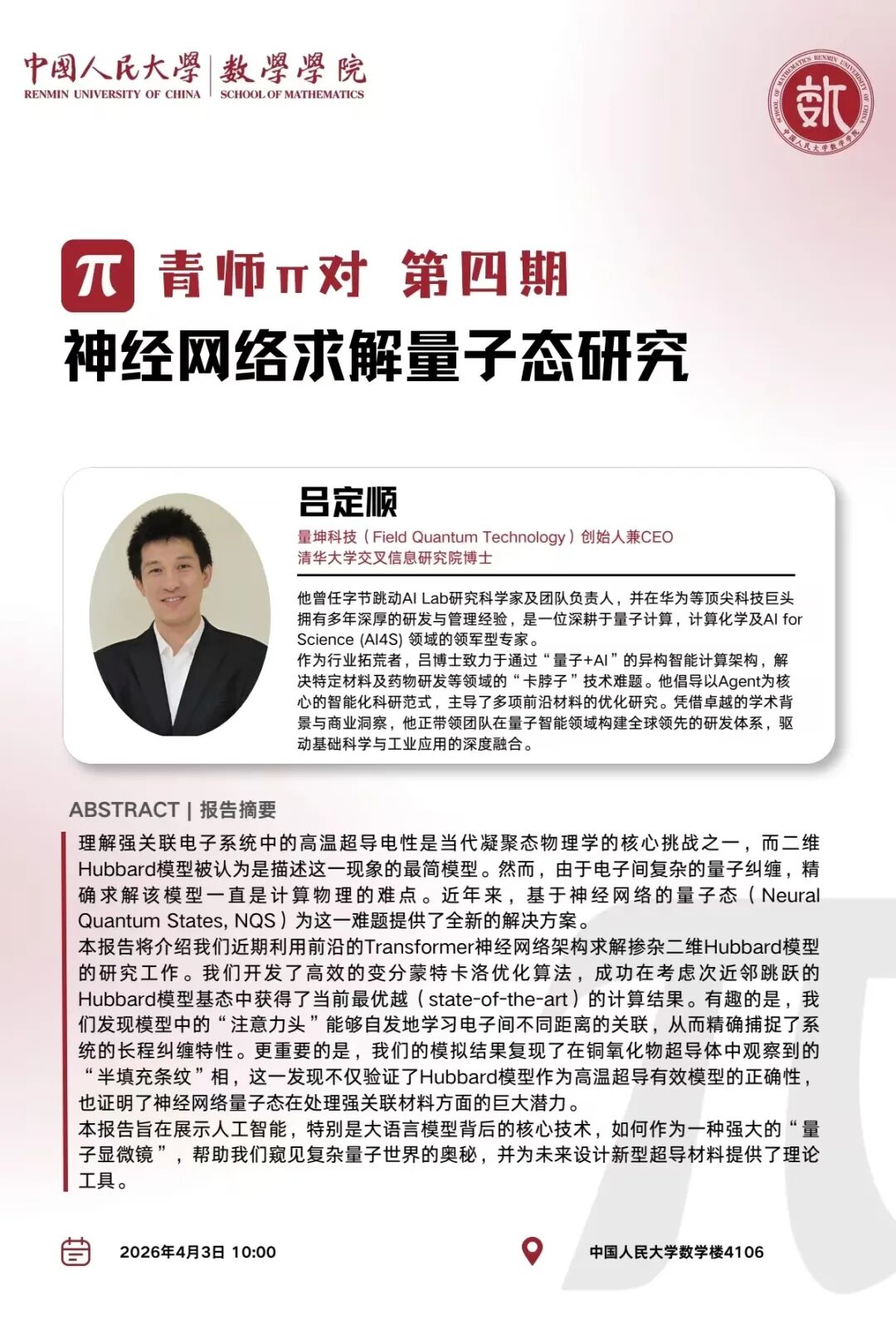 信息来源: 中国人民大学数学学院 发布时间:2026年4月1日