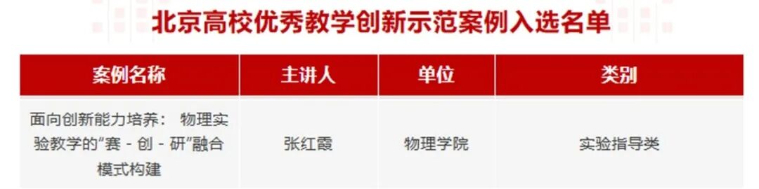 喜报 !物理学院物理实验教学创新案例入选 2025 年北京高校优秀教学创新示范案例