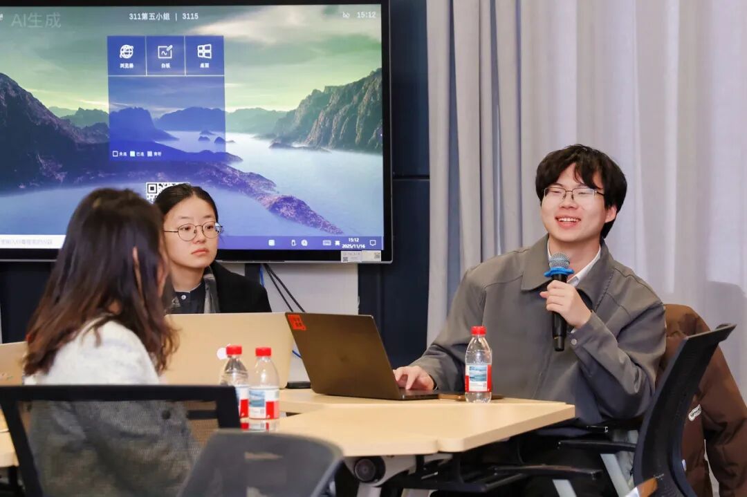 深圳清华大学研究院弹性算力调度研发中心主任、共绩科技创始人付智以《积极投身从零到一的原创实践,把蓝图画在白纸上》为题分享创业感悟;复旦大学集成电路与微纳电子创新学院青年研究员朱可人以《从芯片设计自动化看AI时代的创造与协作》为题分享研究心得;灵心巧手联合创始人兼设计总监郏筱佑以《从实验室到产线:灵巧手如何驱动具身智能与未来工业新范式》为题分享产业实践;西湖大学工学院博士研究生董弘禹以《未来人类探索——AI辅助构建多尺度虚拟医疗数字孪生体》为题分享研究愿景;中国人民大学丝路学院硕士研究生、“China Hands”中美关系口述史平台创始人Koen Smeets以《人类未来与科技伦理的交汇点》为题分享跨文化观察;北京市社会科学院副研究员王鹏以《数智转型视域下的治理能力与治理体系现代化》为题解析数字化转型思路。