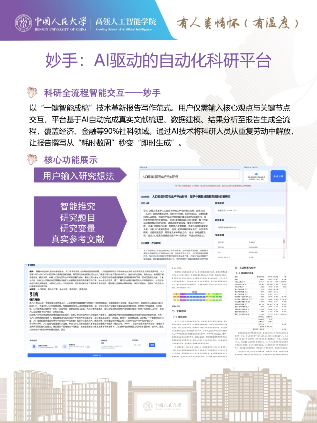 博士生张阳团队研发的“妙手”是一款聚焦“AI Agent for Research”的自动化科研平台。针对科研过程中文献调研耗时、设计复杂、数据处理繁琐、成稿周期长等常见痛点,“妙手”提供了从选题挖掘到报告生成的全流程自动化服务,提高科研质效。