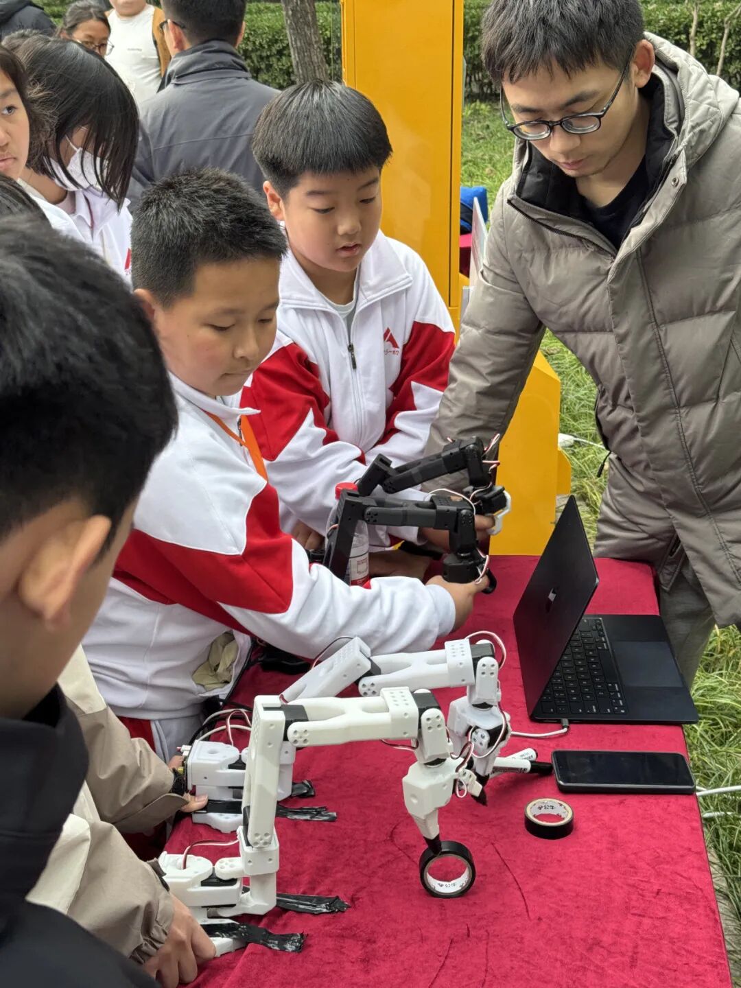 胡迪副教授联合指导的机器人社团带来了“人机协同:LeRobot操控体验”项目,同学们可通过主从臂联动的方式实时操控机械臂,感受人机协作的精确与乐趣。机器人社团是人大校内首个专注于机器人研究与实践的学生组织,在2025年世界人形机器人运动会上荣获“拆药分装”项目亚军。