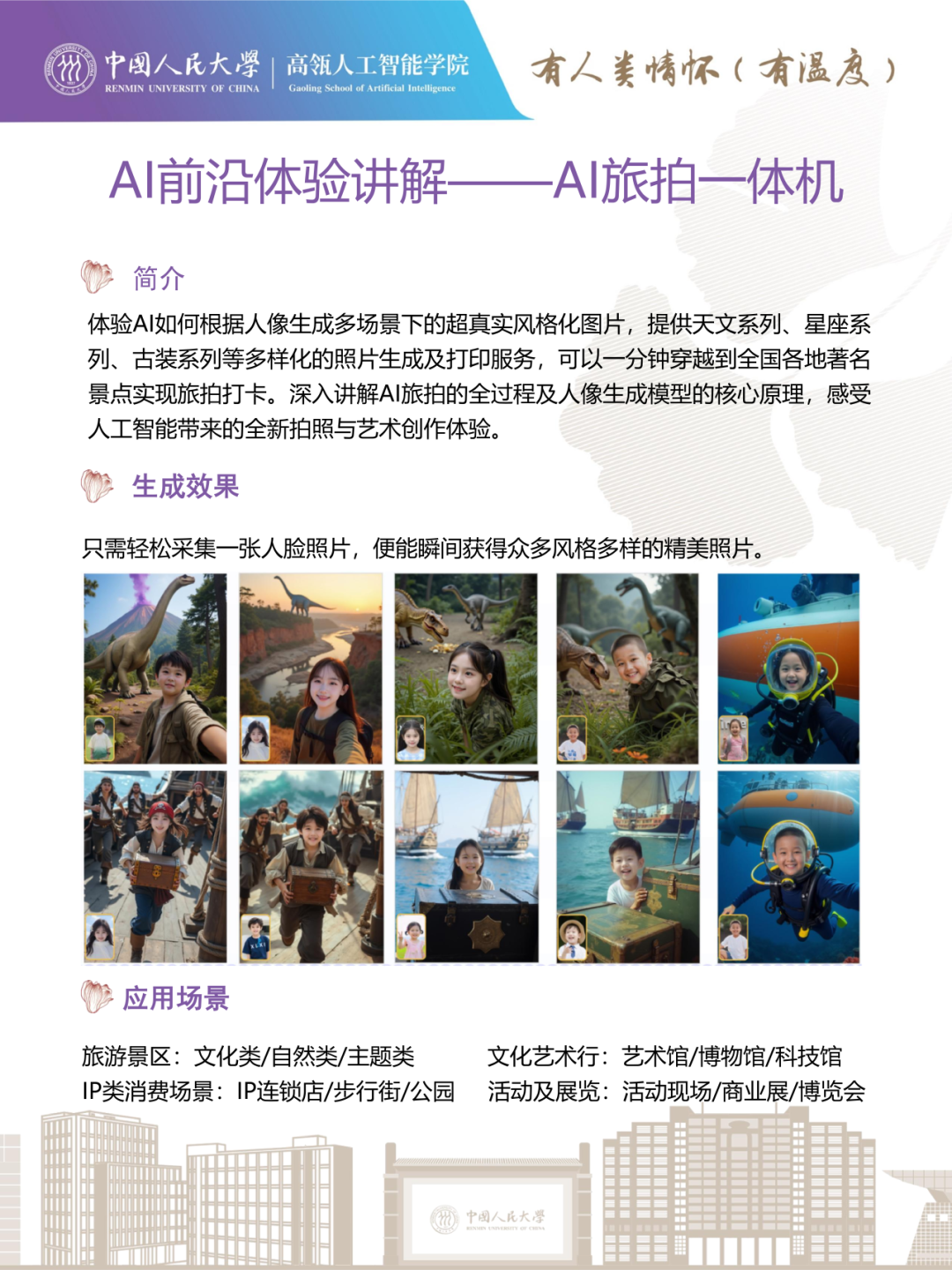卢志武教授团队的“AIGC旅拍一体机”是一款深度融合自研多模态大模型技术的智能交互设备,旨在为游客提供创新性的沉浸式拍照体验。目前已应用于博物馆、科技馆、旅游景区及大型展会等多种场景,是智慧文旅建设中的科技赋能创新实践。