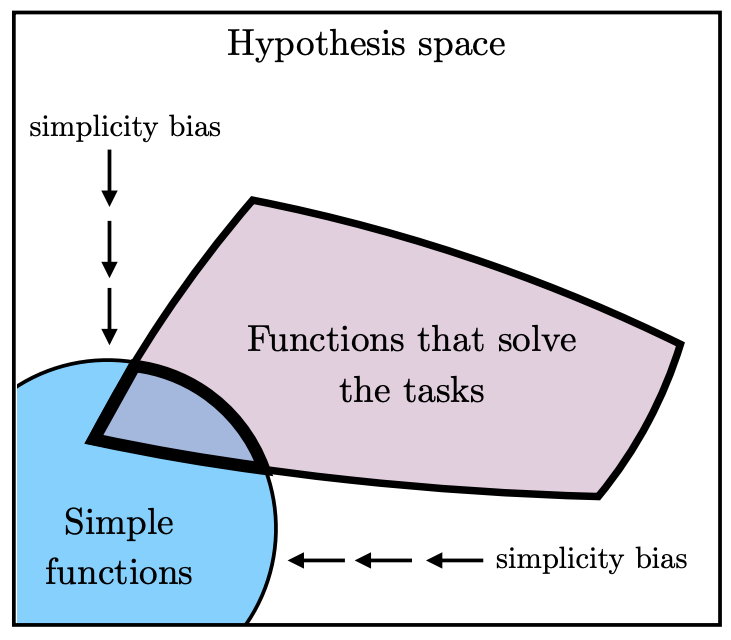 图7 更大的模型有更多拟合数据的方式,但深度网络的隐式偏好引导它们找到其中最简洁的那个解。