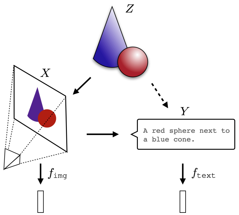图1 图像(X)和文本(Y)都是底层现实(Z)的不同投影。柏拉图表征假说认为,表征学习算法将收敛到对Z的共享表示,而模型规模、数据量和任务多样性的增长驱动这种收敛。