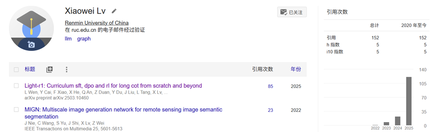 吕筱玮的科研成果不仅限于上述WWW 2025 Oral论文。他还以第一作者在TCS期刊发表了理论计算机科学相关研究,并以第三作者参与了SIGMOD数据库顶级会议的论文工作。他也在CCKS会议上发表了多智能体强化学习相关论文,并在360智脑实习期间参与研发轻量化推理模型Light-R1,被ACL 2025 Industry Track接收,对应仓库收获了超过740个星标。值得一提的是,在本科阶段,他就已涉足计算机视觉领域,围绕语义分割开展研究,并参与了多篇SCI期刊论文的发表。
