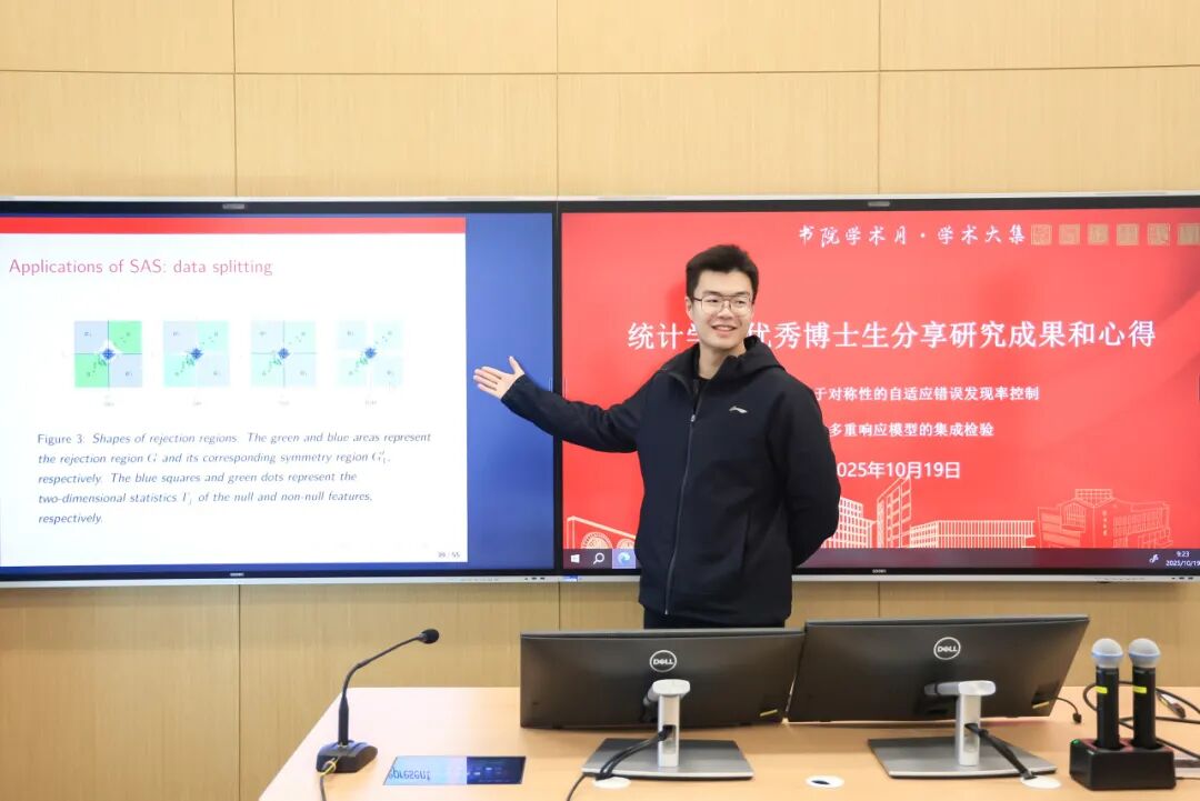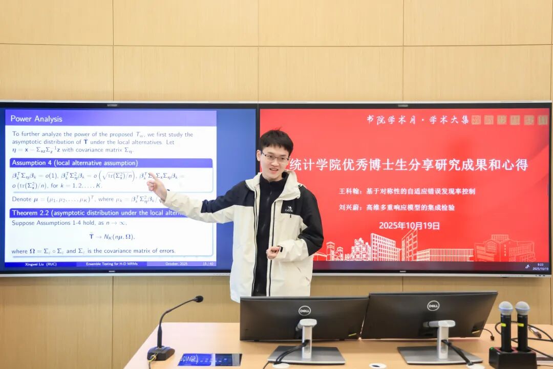 来自统计学院的博士研究生王科翰和刘兴蔚带领在座同学聚焦高维数据分析与多重假设检验等理论与应用问题,展示了其在统计理论创新与交叉研究方面的探索与突破。