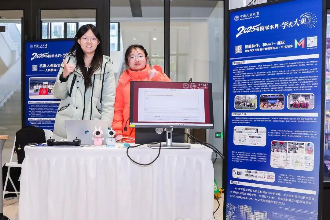 AI·M³ 实验室展区前,四足机器人Go1一亮相便吸引了众多同学的围观。实验室成员梅雨婷、张鑫洁现场演示了“狗狗”行走、转圈、前进、后退等动作,还展示了“拜年”“点头”等互动姿态,引得现场欢呼声不断。据介绍,Go1来自感知与交互智能计算研究所AI·M³ 实验室,该团队长期深耕多模态感知与具身智能研究,致力于让AI既“能动”更“懂人”。除了“机器狗”,展区还展示了实验室在视觉、听觉与动作信息融合方面的最新研究成果,介绍了实验室在情感计算、人工智能安全等领域的前沿探索。实验室成员表示,希望通过“可看、可玩、可交流”的形式,让更多同学在轻松有趣的氛围中读懂AI技术背后的科学原理,感受智能科技的温度与力量。