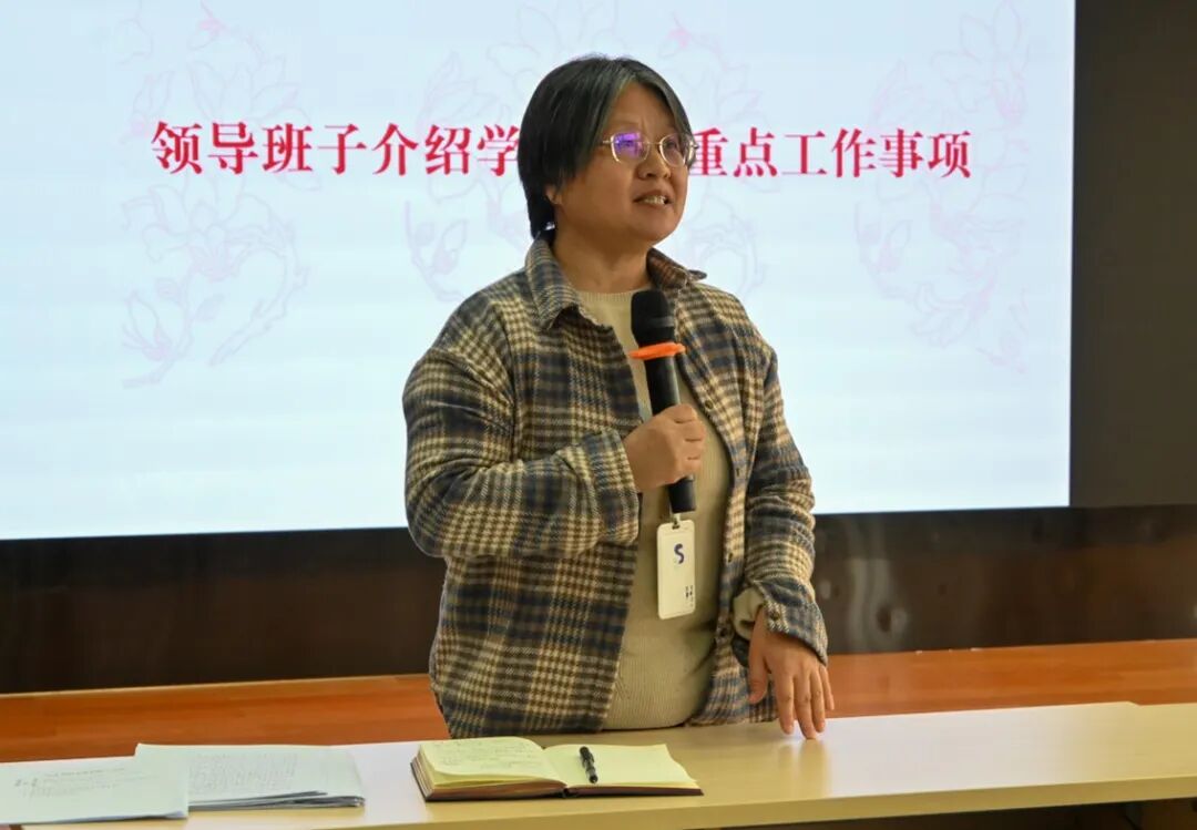吕晓玲汇报了学院科研相关工作情况,建议教师将科研项目与国家战略对接,加强与各地研究机构合作,提升成果转化与社会影响力;鼓励教师积极向学院主办学术期刊投稿,提升期刊质量。同时,她对于学院官网个人主页审核、国(境)外合作科研项目等情况进行介绍。