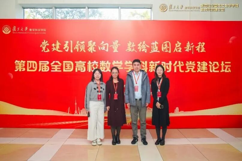 2025年11月22日,第四届全国高校数学学科新时代党建论坛在复旦大学隆重举行,数学学院党委书记柯媛元、党委副书记沈健、团委书记艾提娜、宣传干事周中帆参加此次论坛。本次论坛以“党建引领聚向量 数绘蓝图启新程”为主题,来自全国47所高校的80余位党委书记、专家学者及党务工作者齐聚一堂,共谋数学学科“十五五”发展大计。
