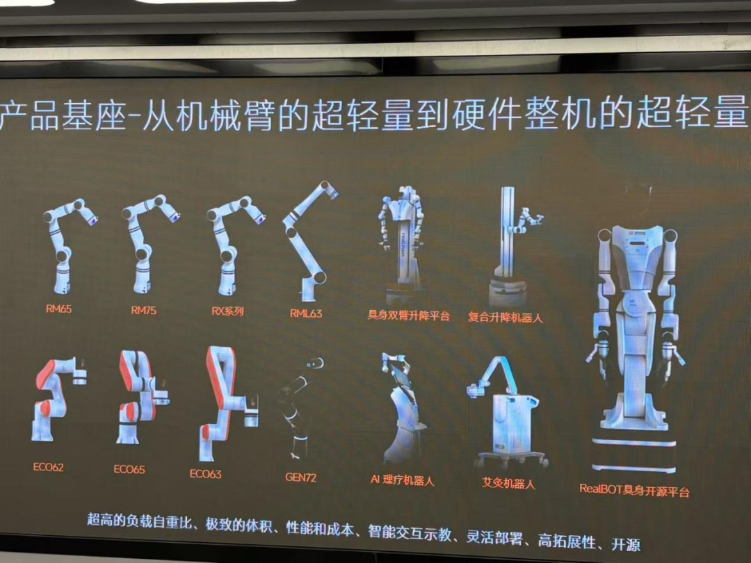调研过程中,睿尔曼公司重点展示了其在超轻量仿人机械臂领域的技术成果。作为训练中心的主要技术支持方,睿尔曼在减速器、电机、驱动器、控制器等关键环节实现了全链条自主研发,核心零部件国产化率达到100%。不同于传统工业机械臂和协作臂的发展路线,睿尔曼聚焦“超轻量仿人”这一细分方向,提出将机械臂做成人臂粗细、同时保持高负载能力的技术目标。其产品目前已实现负载自重比1:1.44,在同类轻量化产品中处于国际领先水平,并正向更高目标持续攻关。这种以真实应用场景为牵引、以底层技术自主可控为导向的发展路径,为我国具身智能产业构建长期竞争力提供了重要支撑。