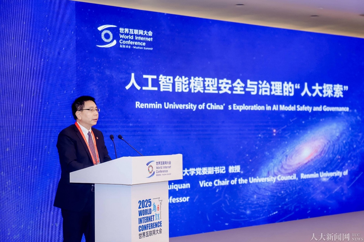2025年世界互联网大会乌镇峰会于11月6日至9日在浙江乌镇举行,本届峰会以“共筑开放合作、安全普惠的数智未来——携手构建网络空间命运共同体”为主题,围绕人工智能、数字经济、文化遗产数字化保护与传承等议题共举办24场分论坛,来自130多个国家和地区的1600多名嘉宾参会。中国人民大学参与本届峰会多项活动,协办人工智能赋能科学研究(AI for Science)分论坛,并发布“人工智能+”系列成果。中国人民大学党委副书记郑水泉参加峰会并在分论坛作主旨发言。