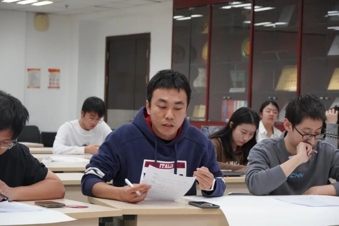 随后的无领导小组面试模拟环节将活动推向高潮。来自统计学院、信息学院、财政金融学院的15位学生,围绕大模型技术应用、新质生产力驱动发展等主题,开展了两轮无领导小组面试实战模拟。从自我陈述到小组讨论,再到总结汇报,同学们综合运用统计学、计算机科学、金融学等跨学科专业知识,在实战中锤炼逻辑表达、团队协作与危机处理能力。